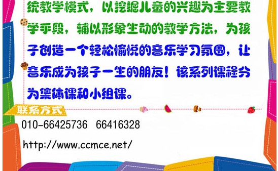 趣味系列课程是中央音乐学院针对音乐初学阶段的特殊性和幼儿教育的心理特点,组织具有丰富经验的专家、教师研发的特色课程。打破了以往单调、枯燥的传统教学模式,以挖掘儿童的兴趣为主要教学手段,辅以形象生动的教学方法,为孩子创造一个轻松愉悦的音乐学习氛围,让音乐成为孩子一生的朋友!该系列课程分为集体课和小组课。