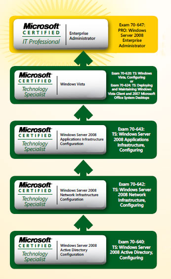 MCITP有两种级别,服务器管理员MCITP及企业管理员MCITP,服务器管理员MCITP主要强调针对Windows 2008的系统、网络、活动目录的技术,企业管理员MCITP主要针对系统、网络、活动目录、应用服务、客户端管理的技术。