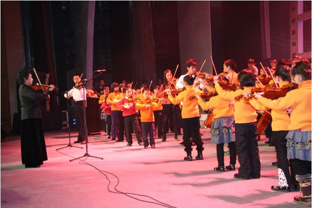 北京光爱学校位于远郊区,学校条件简陋。今年春天中央音乐学院教授赵薇带领赵薇小提琴乐园的助教们,一起义务教授学校的80多名包括来自西藏等各地的孤残特困儿童学习小提琴,孩子们开始都不相信自己的眼睛,每次上完课都拉着老师的手不舍得放走,生怕老师们只是昙花一现。没想到老师们不论寒暑每周都来,未有间断,而且还捐赠了很多小提琴、乐谱、书籍和各种学习用品。孤儿们很珍惜这难得的学习机会,8个月的学习有了飞速的进步,已在金帆音乐厅等多处成功公演,音乐无疑已成为他们心中的希望之光。