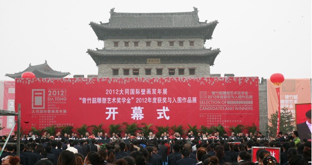大同国际壁画双年展暨“曾竹韶雕塑艺术奖学金”2012年度获奖与入围作品展开幕,300多名海内外壁画艺术家携500余幅作品亮相大同市和阳美术馆。