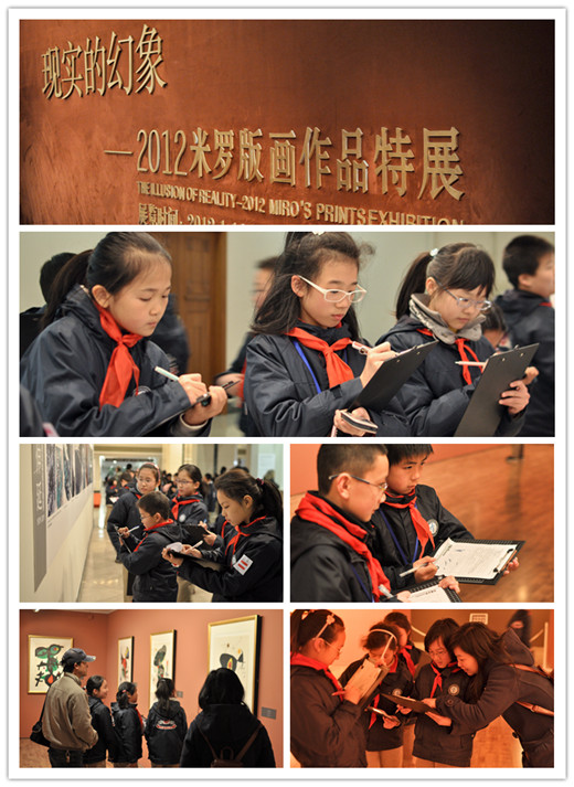 全校兴趣课结束后,五年级率先出发,同学们安静地排着整齐的队伍,有序上车,经过一个小时的路程,他们来到了上海美术馆。在那里,同学们以小队的形式欣赏各展馆的作品,看到了不同的绘画作品,四楼展厅里印象派大师米罗的作品是最吸引学生们的,大家拿着实拿着还找到了中国作家们绘制的版画。