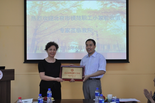 在北京市教育工会主席史利国的率领下,由北京市教育工会常务副主席刘欢、北京市教育工会副主席郭峰、北京舞蹈学院工会常务副主席李贺华、北京物资学院工会常务副主席朱润辉、中央戏剧学院工会常务副主席周劭煜、北京经济管理职业学院工会常务副主席王小松、延庆县教育工会主席李强、北京市教育工会权益保障部部长肖树生等组成的北京市模范职工小家验收专家组一行,对北京科技大学外国语学院申报北京市模范职工小家进行验收。验收组专家在听取学院党政工的汇报,查阅文件资料,实地考察职工小家以及召开教职工座谈会等工作,对外国语学院的小家建设进行了认真细致的检查和考核,专家组一致同意并通过北京科技大学外国语学院成为北京市模范职工小家,北京市教育工会副主席郭峰主持验收会及授牌仪式,北京市教育工会主席史利国为北京科技大学外国语学院授牌。