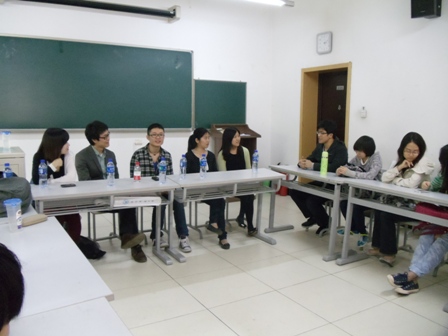北京科技大学60周年校庆之际,众多优秀校友回到外国语学院。4月22日下午我院日语专业校友与在校生座谈会在外语楼108举行。到场的校友有05级的张方学姐、秦峰学长,06级的潘建学学姐、姚佳学姐,07级的朱丞伯学长。他们现在有的在名企工作,有的在继续深造。