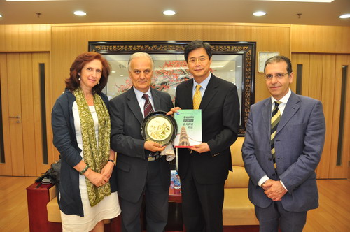 马燕生副校长对马里奥•卢斯科尼主席一行的到访表示欢迎,并介绍了我校教学科研情况以及意大利语专业建设情况。