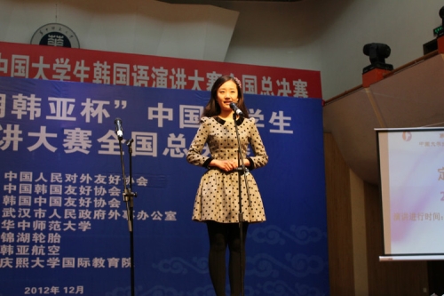 第七届“锦湖韩亚杯”中国大学生韩国语演讲大赛全国总决赛12月1日在武汉落下帷幕。经过激烈的角逐,中国传媒大学外国语学院2010级朝鲜语专业学生王逸凭借其出色的表现一举夺得本次大赛亚军,并获得了免费赴韩留学半年的机会。这是中国传媒大学朝鲜语专业在该项赛事上取得的最好成绩。