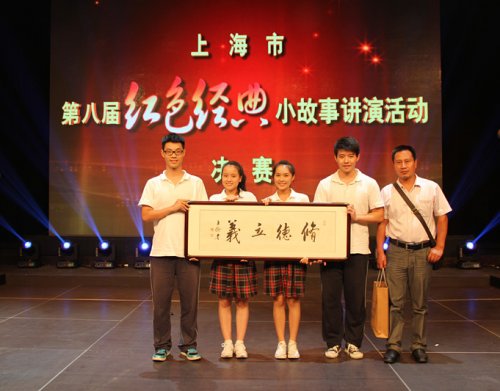 上戏附中高一(3)班相艺彦、高二(3)班余佳伟、徐一丹、高二(4)班吴佳颖等4位同学代表静安区赴黄浦区青少年活动中心,参加了上海市第八届红色经典小故事的讲演复赛。他们参赛的《一切美丽由此而生》在全市18所参赛高中组中以97.1的最高分获得了复赛的第一名。9月30日,他们又在上海教育电视台进以94.1的最高分获高中组的第一名。